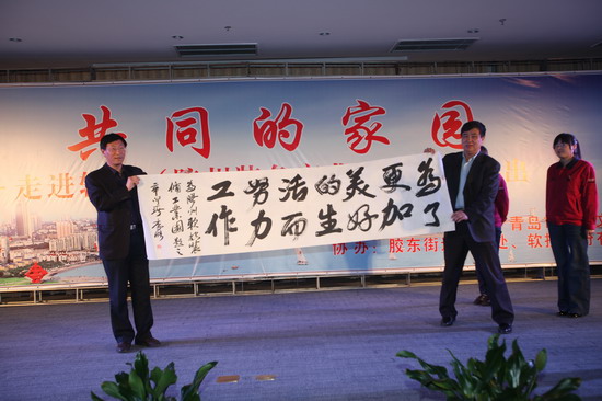 在演出期間,青島市總工會的領(lǐng)導(dǎo)向軟控員工贈送了書箱。據(jù)了解,青島總工會開展的以提高新市民整體素質(zhì)為主要內(nèi)容的“共同的家園”主題系列活動,已連續(xù)五年開展了“送演出、送書箱、送講座、送電影、送活動”為主要內(nèi)容的“五送”活動,走進(jìn)廠礦企業(yè)、建筑工地,慰問新市民10余萬人,極大地豐富和充實(shí)新市民的精神文化生活。